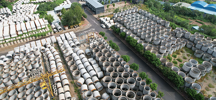 公司擁有五條國內先進的徑向擠壓、芯模振動生產線,生產直徑300mm至3500mm承插口、企口、鋼承口水泥管和方涵、箱涵、預制裝配式檢查井等各種水泥構件,年生產能力超過150公里,產值超億元。
